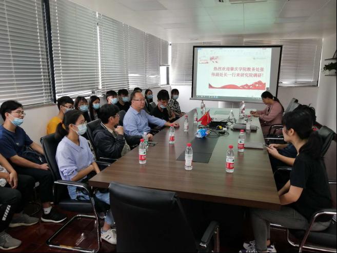 何頔首先代表研究院对张伟一行的到来表示欢迎,感谢肇庆学院近年来对研究院人才培养的支持。同时详细介绍了环境生态工程研究院完善的实验室建设和师资力量,欢迎肇庆学院学生加入研究院大家庭。随后环境生态工程研究院19级硕士蓝卓玲(毕业于肇庆学院)也和来访学生进行了深入的交流,并详细解答了相关问题。座谈会后研究院实验员张菀鑫老师带领来访师生参观了研究院的实验室。