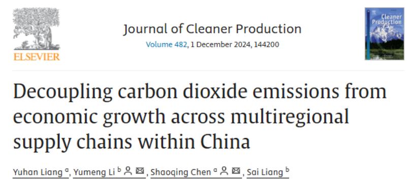 标题:Decoupling carbon dioxide emissions from economic growth across multiregional supply chains within China