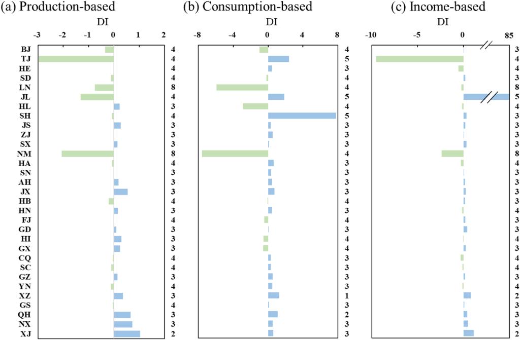 鉴于此,本研究从生产、需求和供给视角探究了省级层面二氧化碳排放与增加值之间的解耦状态。将环境扩展多区域投入产出(EE-MRIO)模型与解耦指标相结合,构建了一个全面的多区域解耦分析框架,揭示了2012-2017年间中国各地区的解耦状态。结果表明,不同视角下22个省份(例如北京、山东和新疆)的解耦状态呈现多样性。例如,北京在直接碳排放与增加值之间实现了强解耦。然而,其基于收入的解耦状态为弱解耦。值得注意的是,在需求和供给视角下,大约79%和71%的跨区域对(即存在碳排放和增加值流动的两个区域)尚未实现碳排放与增加值之间的强解耦。解耦结果可以为政策制定者提供宝贵见解,支持其推动碳排放与经济扩张的脱钩,以实现国家的可持续发展。该研究框架也适用于其他国家。