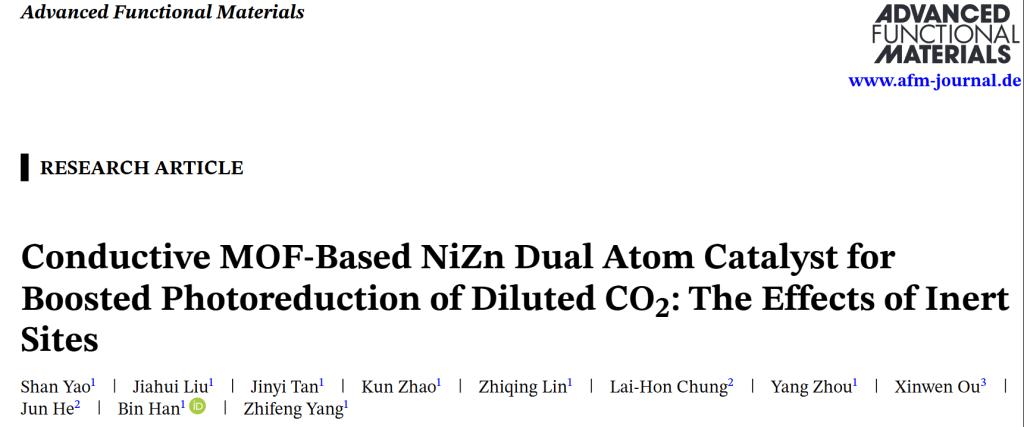 杨志峰院士团队韩彬教授课题组在人为源二氧化碳转化研究中取得重要进展,研究成果以“Conductive MOF-Based NiZn Dual Atom Catalyst for Boosted Photoreduction of Diluted CO2: The Effects of Inert Sites”为题发表于《Advanced Functional Materials》。韩彬教授为论文通讯作者,弹珠台游戏