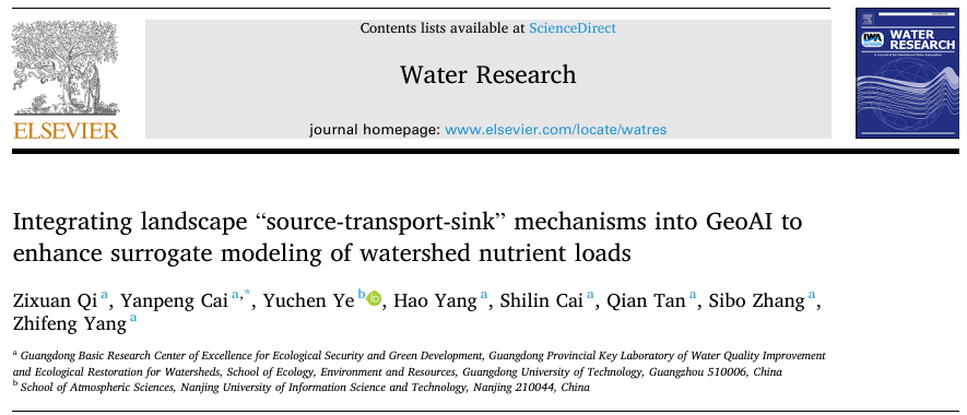 杨志峰院士团队蔡宴朋教授课题组在Water Research上发表题为“Integrating Landscape "Source-Transport-Sink" Mechanisms into GeoAI to Enhance Surrogate Modeling of Watershed Nutrient Loads”的研究论文。蔡宴朋教授为论文通讯作者,弹珠台游戏