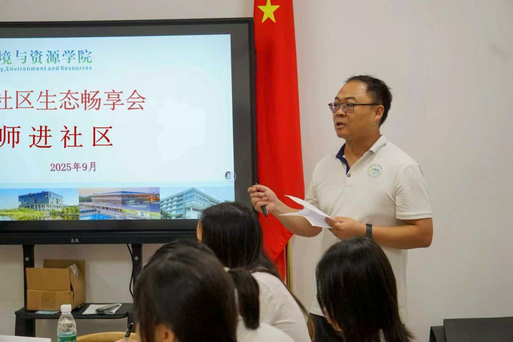在东九社区活动空间开展“名师进社区”生态畅享会。学院“百人计划”特聘教授、海外优青李波老师、副教授洪念老师,辅导员欧少珍及全体2025级本科新生宿舍长参加。