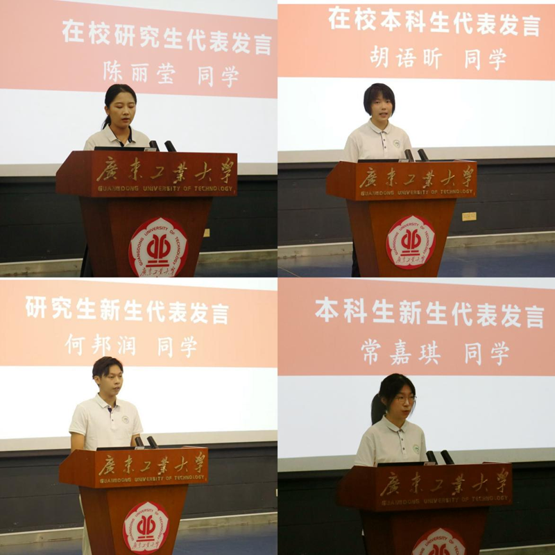 在校研究生代表陈丽莹同学、本科生代表胡语昕同学分享了在学院科研、创新实践及校园生活中的经验,鼓励学弟学妹们积极探索新知,勇于接受挑战。研究生新生代表何邦润同学和本科生新生代表常嘉琪同学表达了对崭新学习生活的期待与信心,立志学好专业知识、锤炼实践能力、投身生态文明建设。