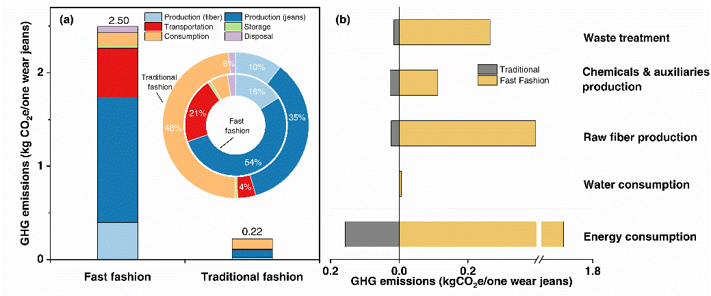 快时尚消费的碳足迹(a)及贡献分析(b)